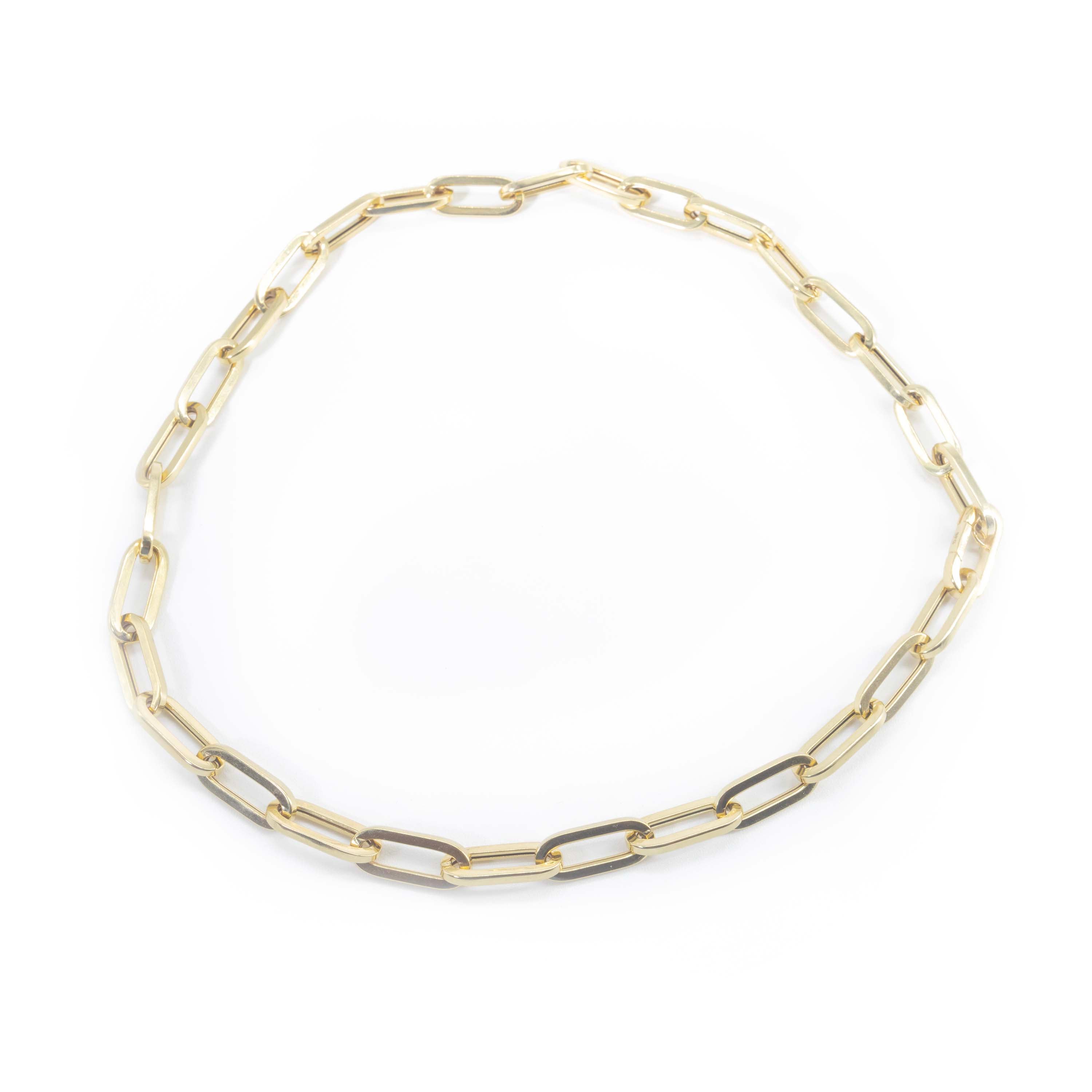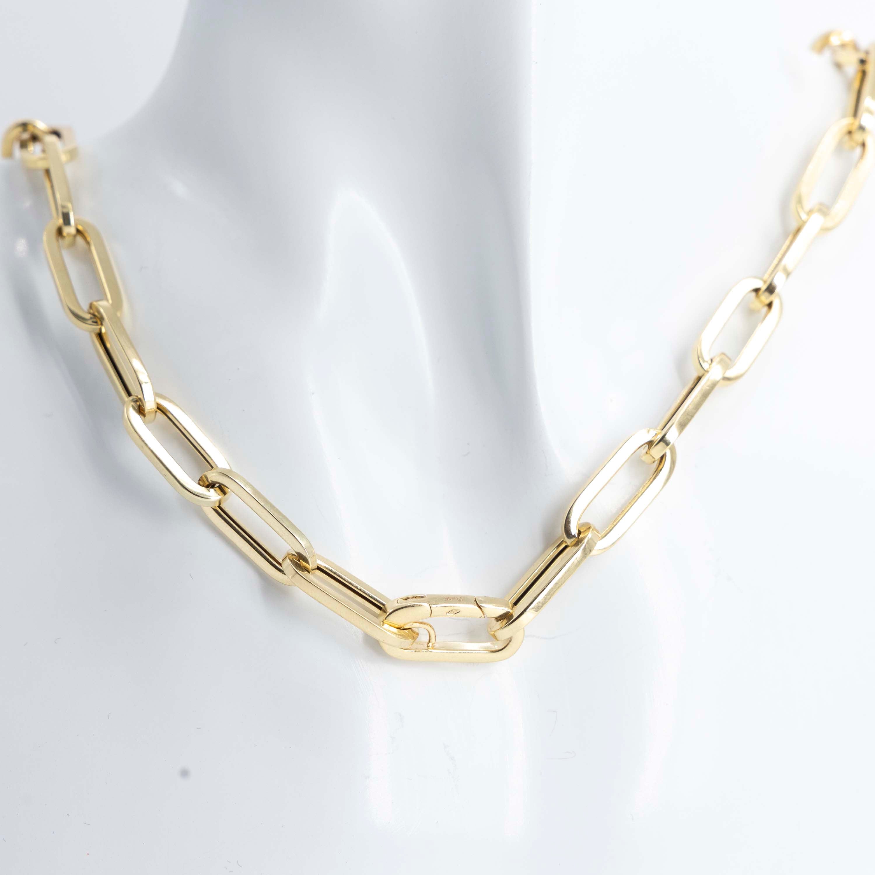 This 14k gold paperclip chain is a timeless and elegant addition to any jewelry collection. Each link is carefully crafted with 14 karat gold, creating a durable and luxurious piece. Add a touch of sophistication to your wardrobe with this classic chain.
