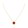 18k Gold One Clover Carnelian Red necklace
