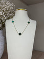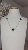 Discover the elegant charm of our 3 Fancy Clover Necklace. Crafted with gold and adorned with vibrant green stones, this collar necklace exudes style and sophistication. Add a touch of luck to your wardrobe with this stunning piece.